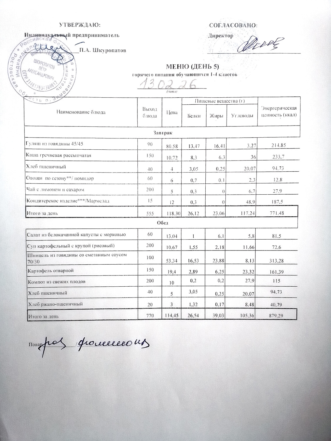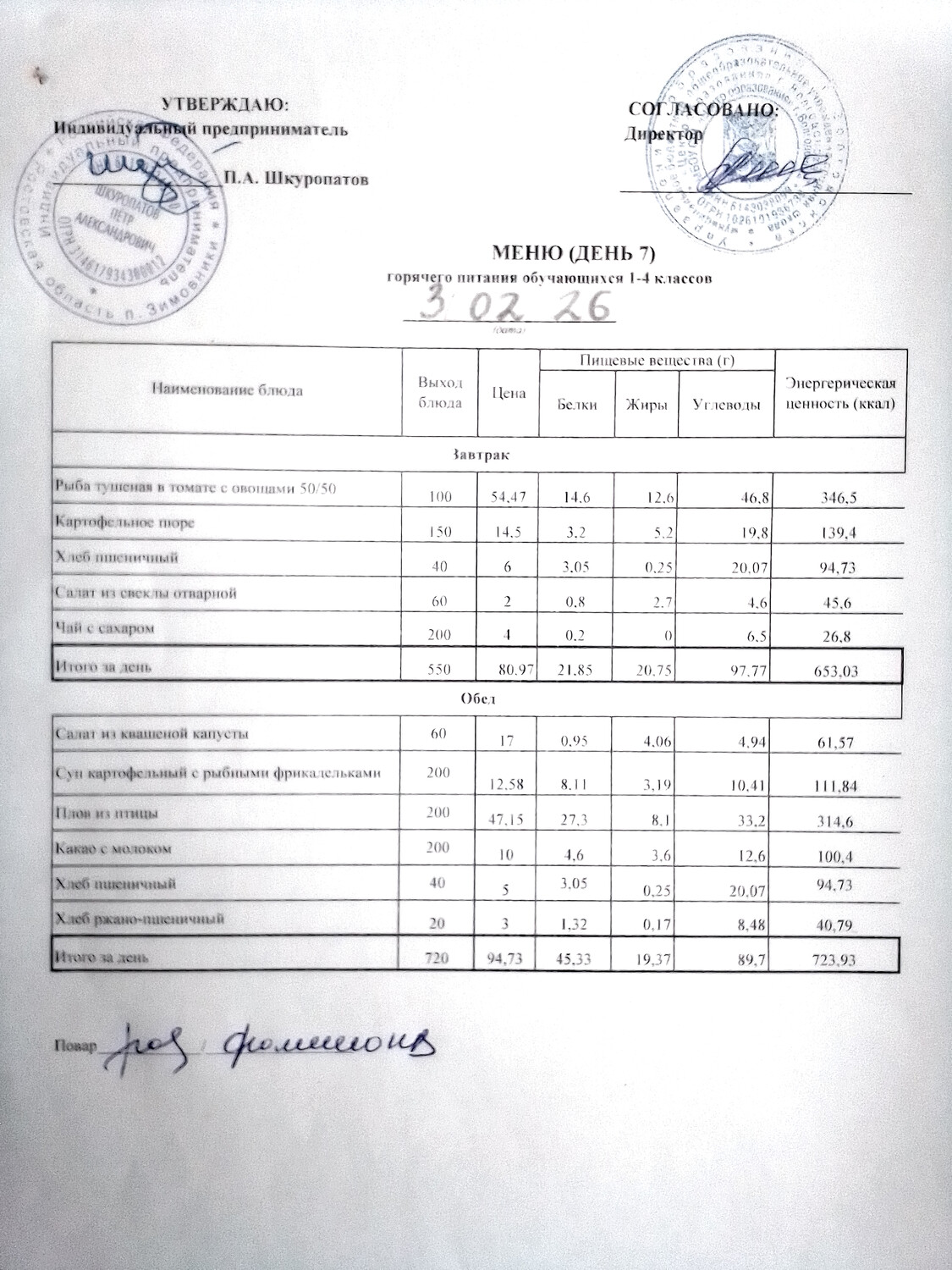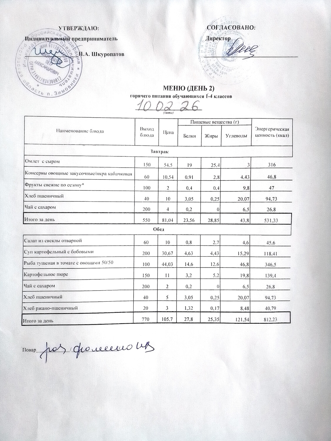 Организация питания в образовательной организации