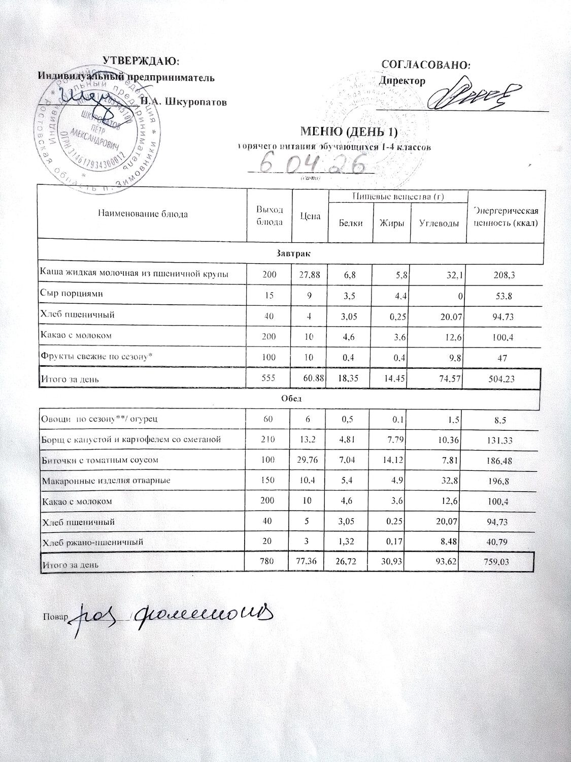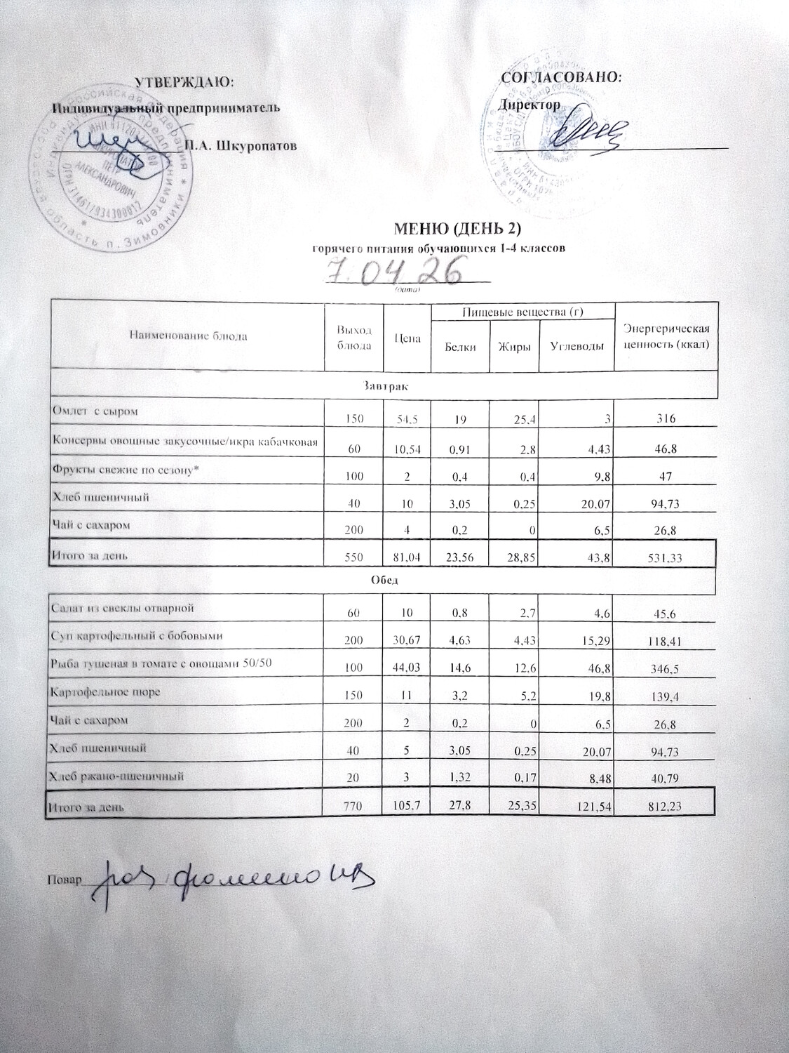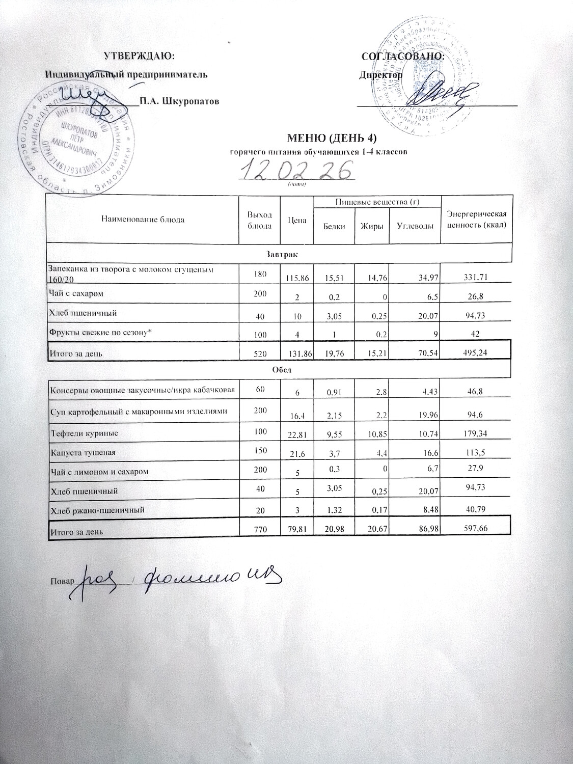 Организация питания в образовательной организации
