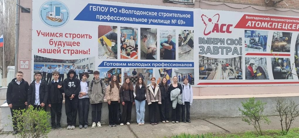 В рамках профориентационной работы школы для учащихся выпускных классов была организована экскурсия в «ГБПОУ РО ПУ № 69» г. Волгодонска (строительный лицей). Мероприятие прошло в дружеской и познавательной атмосфере.